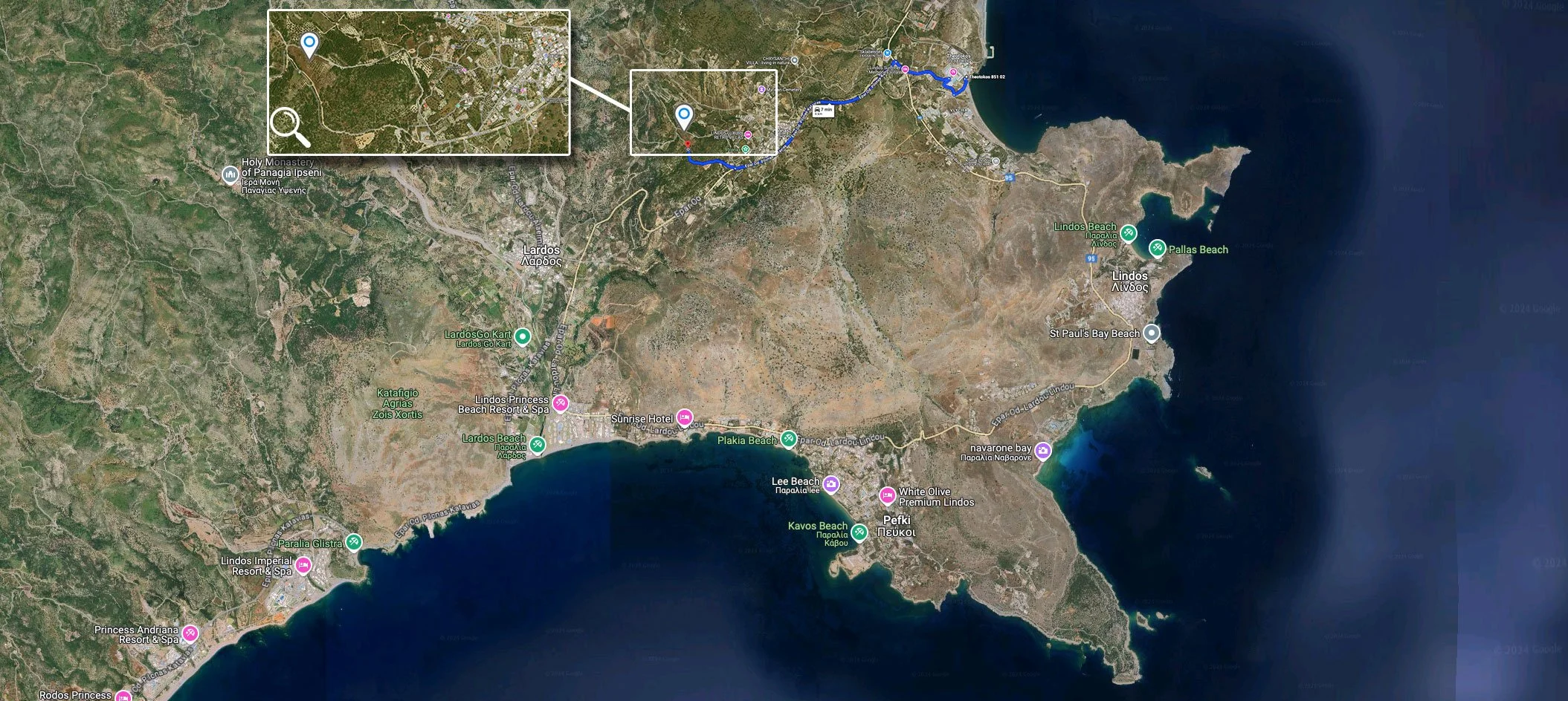 Imagine living just a short drive (5 km) from Lindos, known for its picturesque white-washed houses, the ancient acropolis with sweeping sea views, and lively dining spots. On the other side, you have Lardos, a charming town with warm-hearted locals, a lively square, traditional Greek tavernas, and an inviting beach perfect for days in the sun.
